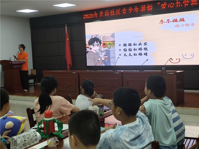 开班首日,小桔灯志愿服务队的志愿者们以AI动漫伙伴互动形式破冰,拉近与井岗社区孩子们之间的距离。在暑期自护课程情景演绎中,孩子们化身小侦探,积极辨识“安全陷阱”,帮助孩子们提升安全意识。