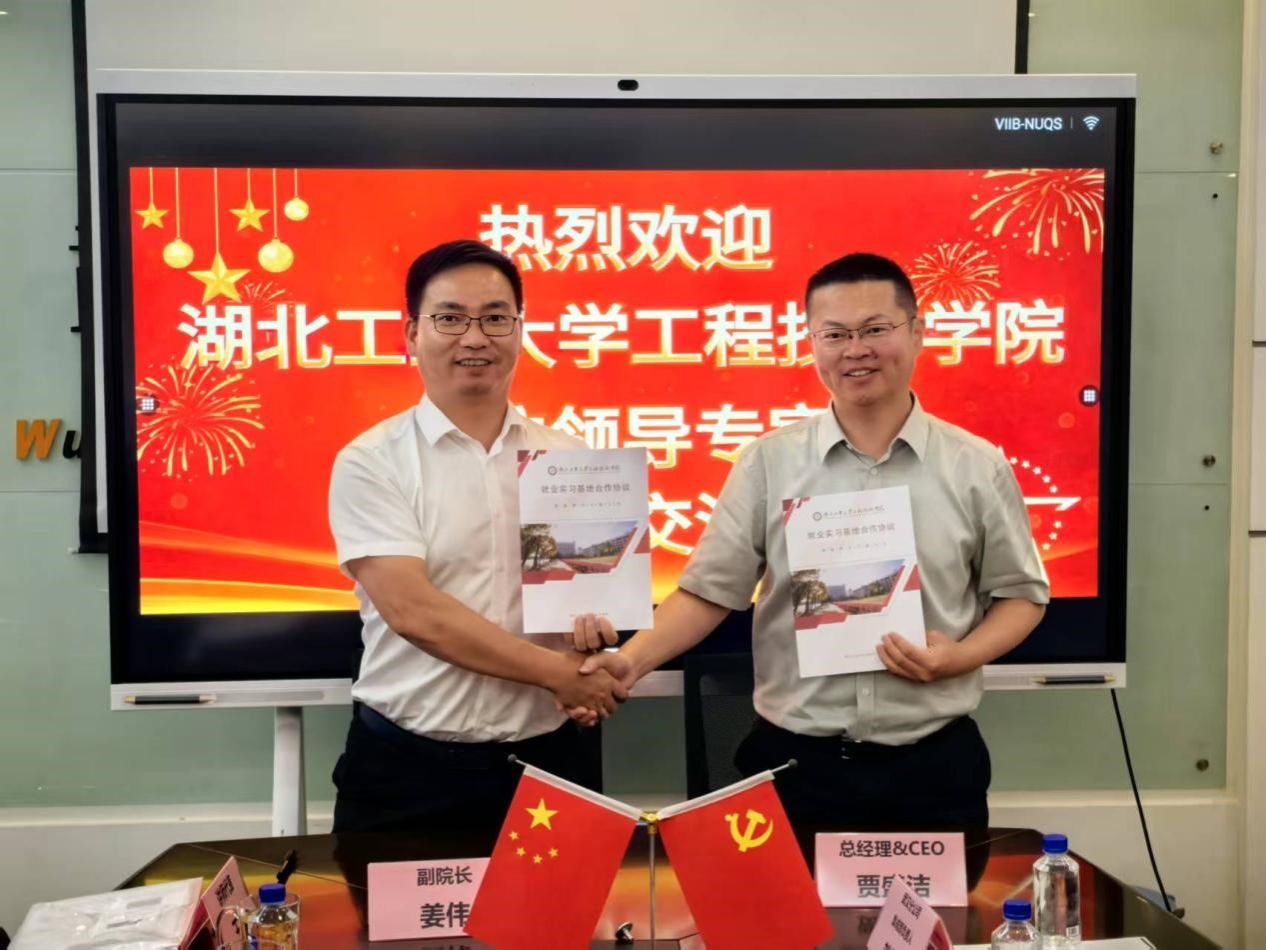 校企双方共同签署了《校外实习实训基地合作协议》,并围绕学生就业实习、人才培养、科研合作等内容进行了热烈讨论。贾盛洁对学院的教学质量和学生素质给予了高度评价,并表达了与学院进一步加强合作的意愿。姜伟表示,学院将主动对接湖北省“51020”现代产业体系,紧密结合企业需求,优化专业设置和课程体系,为企业输送更多高素质应用型人才。